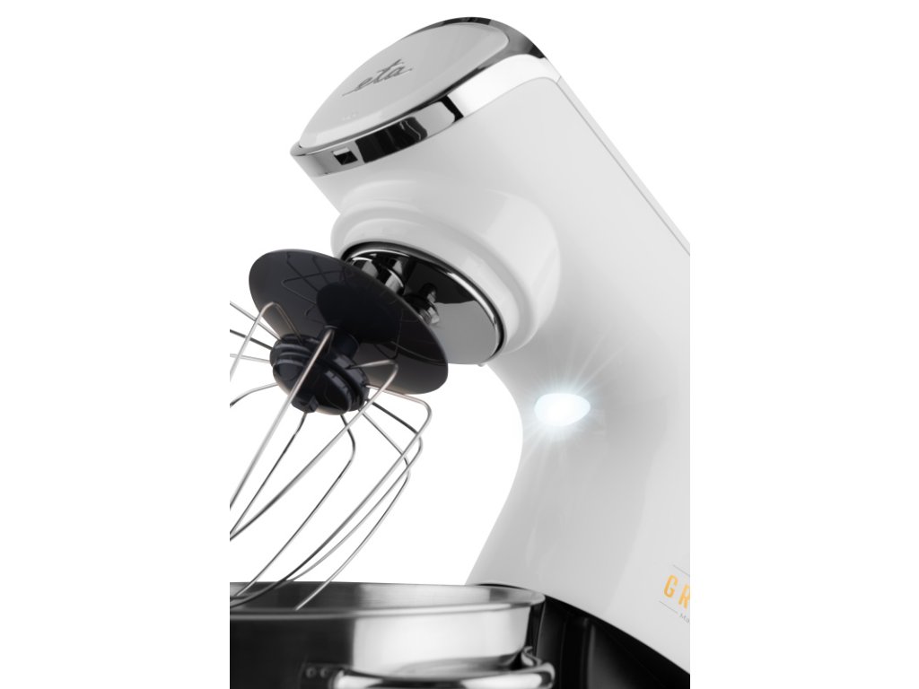 ETA GRATUS EVO MAX 1028 90061, príkon 1500 W • celokovové prevedenie vrátane prevodov • plynulá regulácia so stabilizátorom otáčok • planetárny systém miešania • PULSE • možnosť nastavenia optimálnej výšky nadstavcov • bezpečnostný systém výkyvného ramena