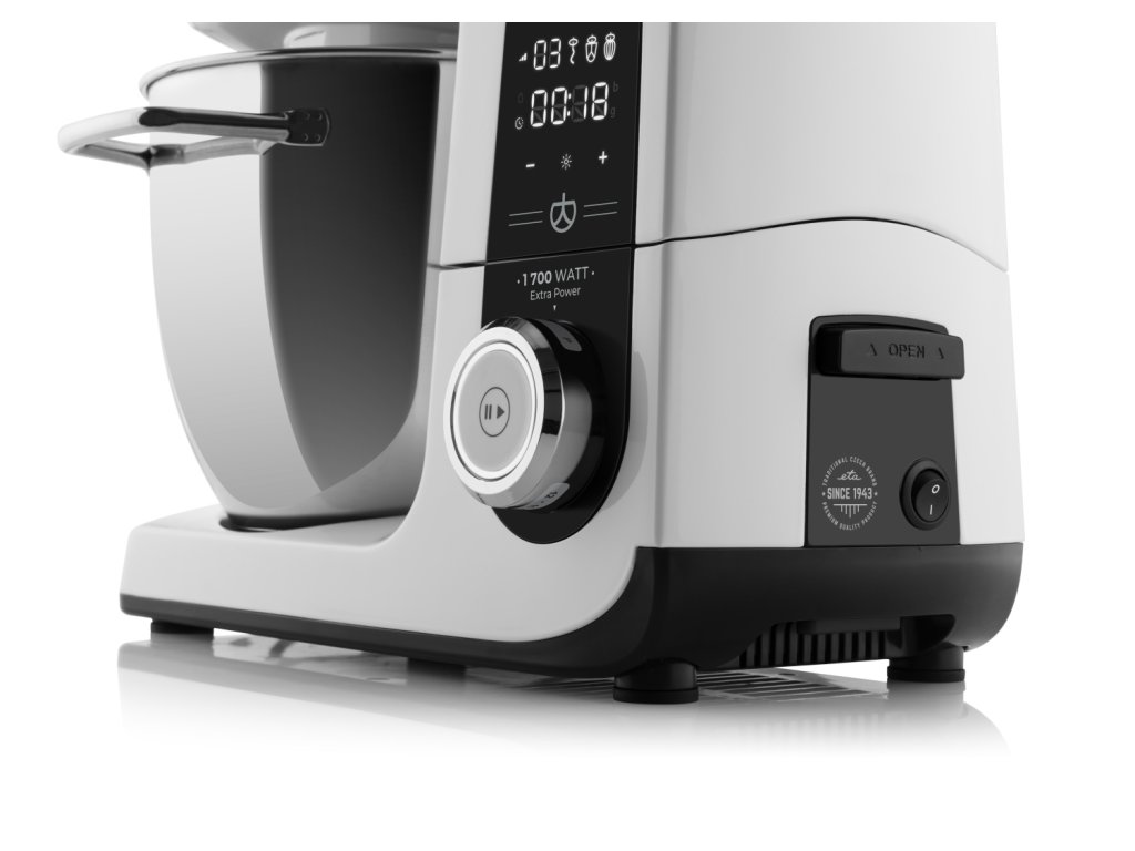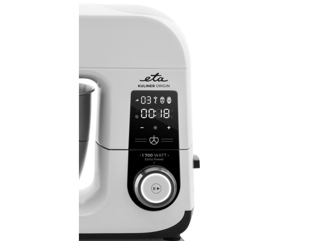 ETA GRATUS KULINER ORIGIN 2038 90000, príkon 1700 W • celokovové prevedenie vrátane prevodov • plynulá regulácia so stabilizátorom otáčok • planetárny systém miešania • PULSE • možnosť nastavenia optimálnej výšky nadstavcov • bezpečnostný systém výkyvného ramena • LED displej s ukazovateľom rýchlosti, upozornenie pri dosiahnutí max. rýchlosti, minútky/stopky, ovládané svetlá • 10 min. časovač