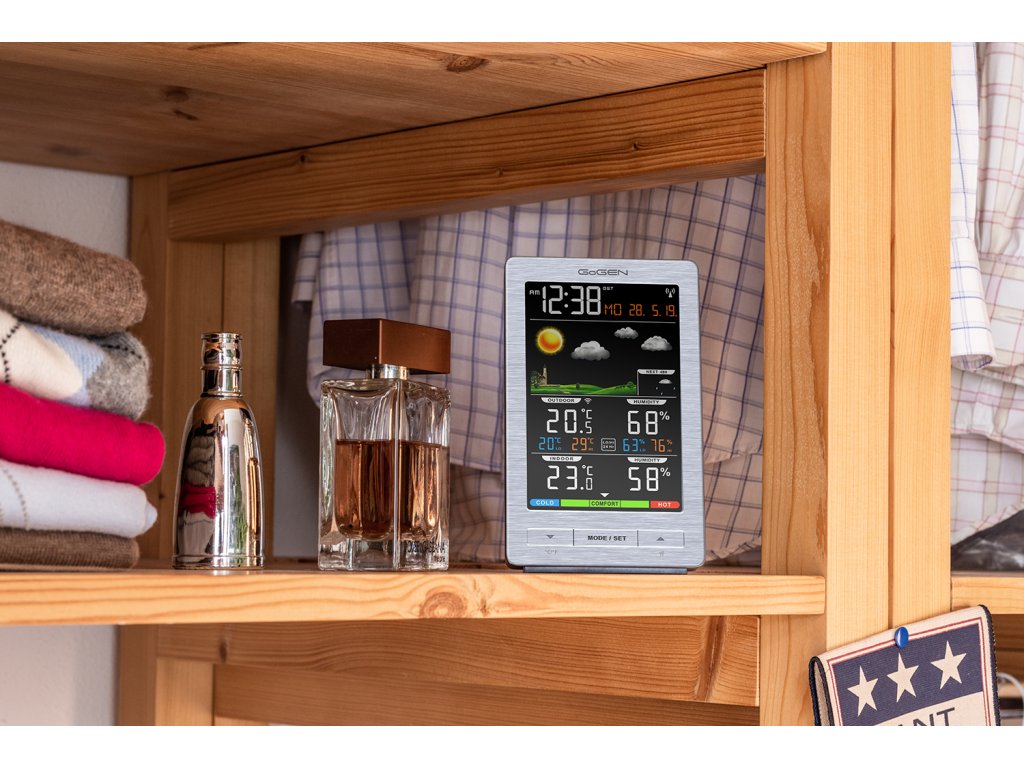 GoGENME2930 • Meteostanica, GoGEN ME2930, farebný displej, bezdrôtový senzor • farebný displej s nastaviteľnou intenzitou podsvietenia , bezdrôtový senzor , predpoveď počasia s animáciou , vnútorná teplota: - 10°C až +50°C , vonkajšia teplota: -20°C až +50°C , vlhkosť vzduchu: 20% až 99% , max. a min. vnútornej/vonkajšiej teploty , max. a min. vlhkosti vzduchu , budík , dátum , napájanie: hlavná jednotka - adaptérom alebo 2x batérie AA, teplotný senzor - 2 x batérie AAA, batérie nie sú súčasťou balenia, farba: sivá , záruka 4 roky