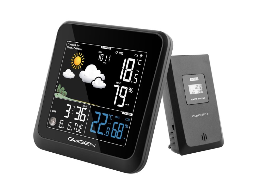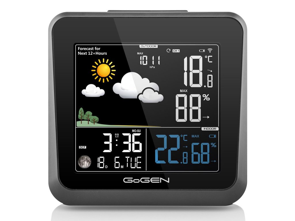 GoGENME3236 • Meteostanica, GoGEN ME3236, farebný displej, bezdrôtový senzor • farebný displej s nastaviteľnou intenzitou podsvietenia , bezdrôtový senzor , predpoveď počasia s animáciou , vnútorná teplota: - 10°C až +50°C , vonkajšia teplota: -20°C až +65°C , vlhkosť vzduchu: 10% až 99% , max. a min. vnútornej/vonkajšiej teploty , max. a min. vlhkosti vzduchu , barometrický tlak - absolútny , možnosť použitia až troch senzorov (MESENZOR36) , budík , dátum , napájanie: hlavná jednotka - adaptérom alebo 3x batérie AAA, teplotný senzor - 2 x batérie AAA, batérie nie sú súčasťou balenia , farba: čierna , záruka 4 roky