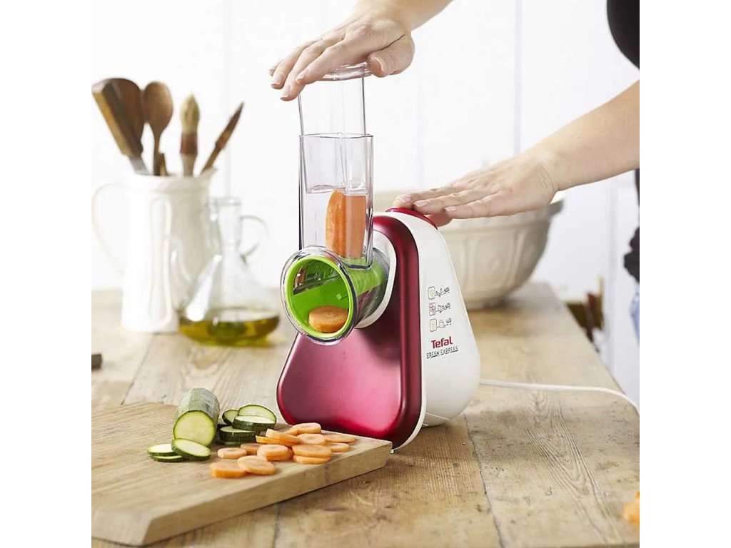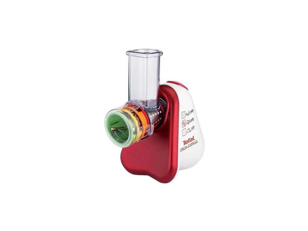 Elektrické strúhadlo - TEFAL MB 756 G 31, Elektrické strúhadlo – s príkonom 200 W, plniaca trubica s priemerom 57 mm, 5 strúhacích nadstavcov, časti vhodné do umývačky, protišmykové nožičky, určené na druh potravín: zelenina, syr a ovocieDodatočné parametre