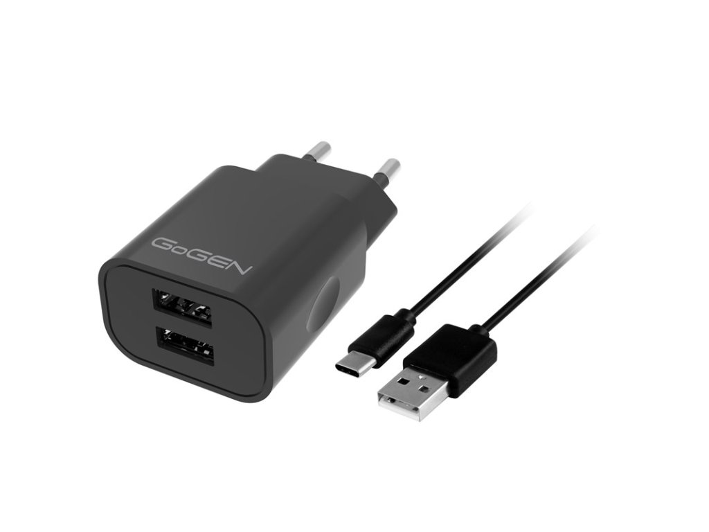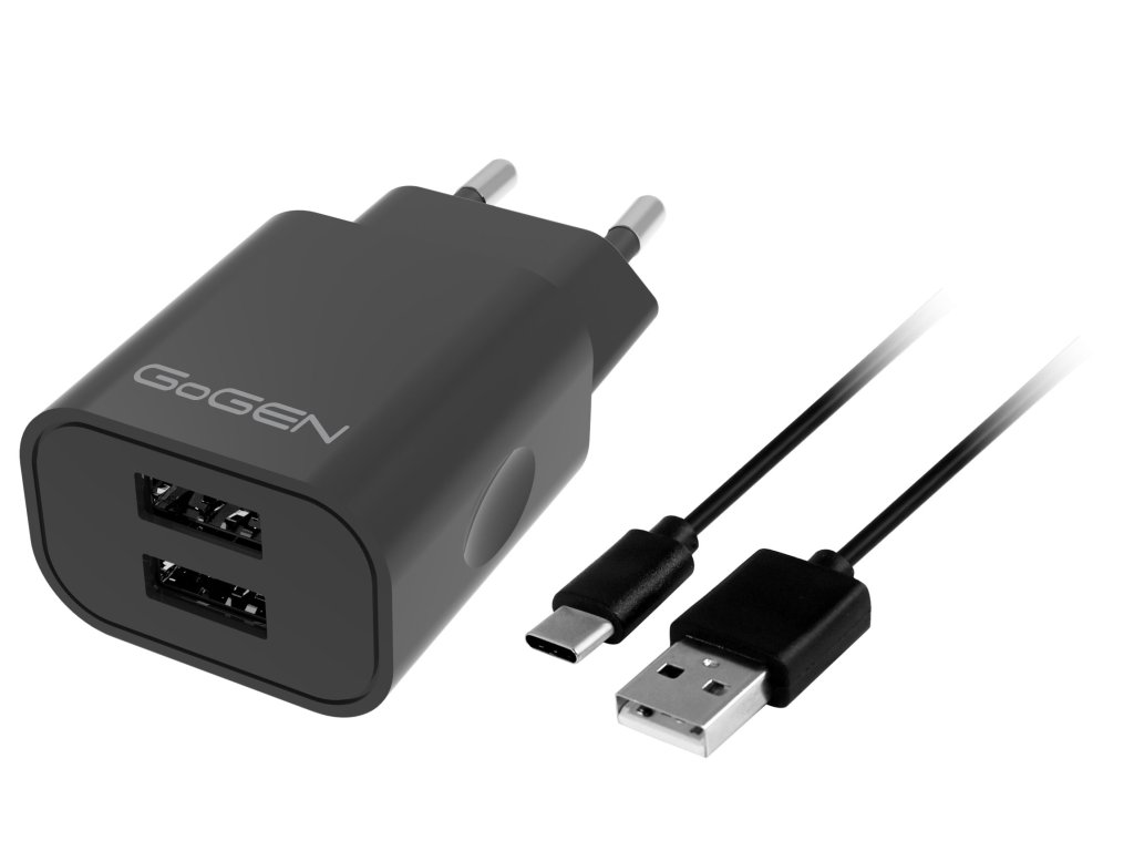GoGENACH205CB • Nabíjací USB adaptér, GoGEN ACH205CB, nabíjačka do siete • 2x nabíjací USB výstup , 1m USB-C kábel , výstupný prúd 2A , výstupné napätie 5V , farba: čierna