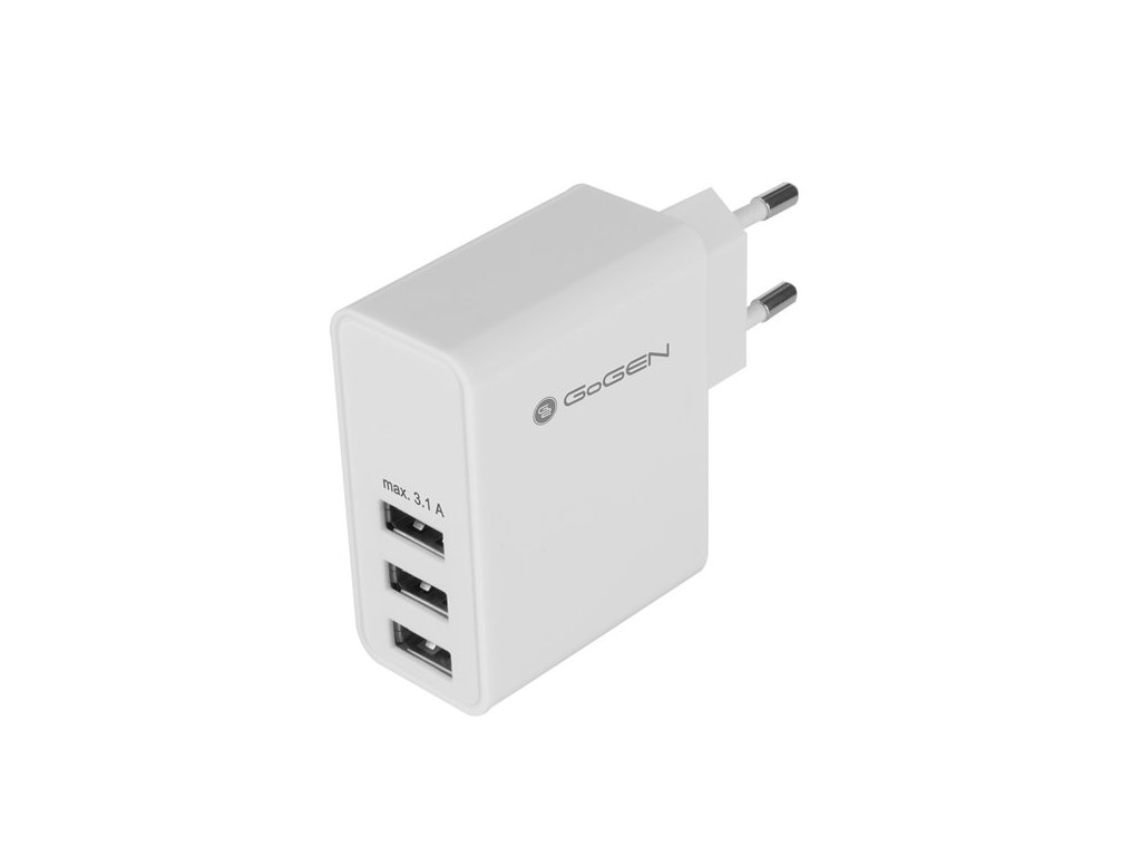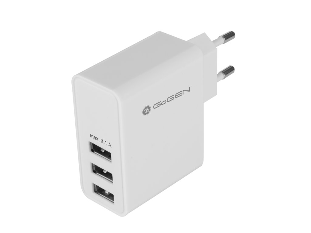 GoGENACH300 • Nabíjací USB adaptér, GoGEN ACH300, nabíjačka do siete • 3 x nabíjací USB výstup , max. nabíjací prúd 3,1 A , výstupné napätie 5 V , farba biela