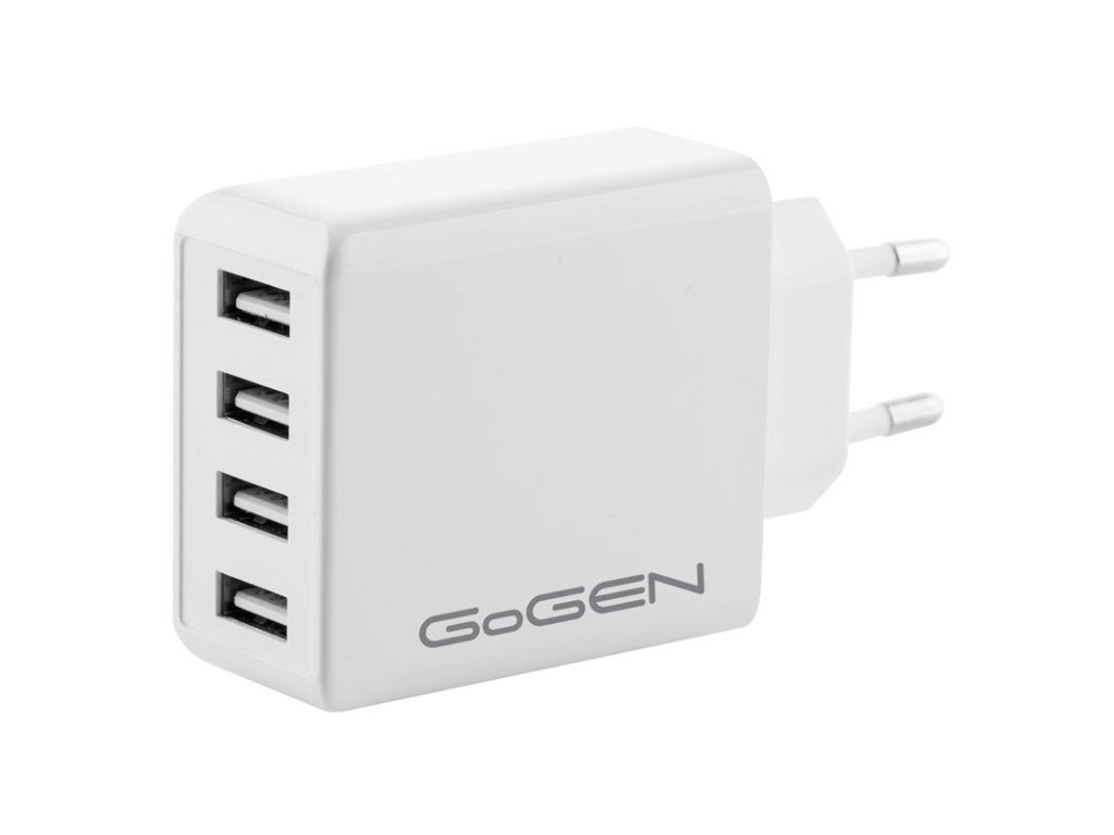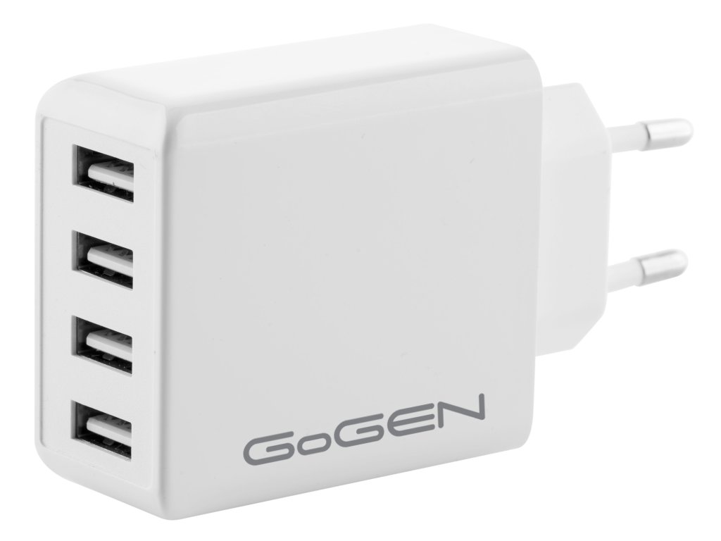 GoGENACH400W • Nabíjací USB adaptér, GoGEN ACH400W, nabíjačka do siete • 4x nabíjací USB výstup , výstupný prúd 6A , výstupné napätie 5V , farba: biela