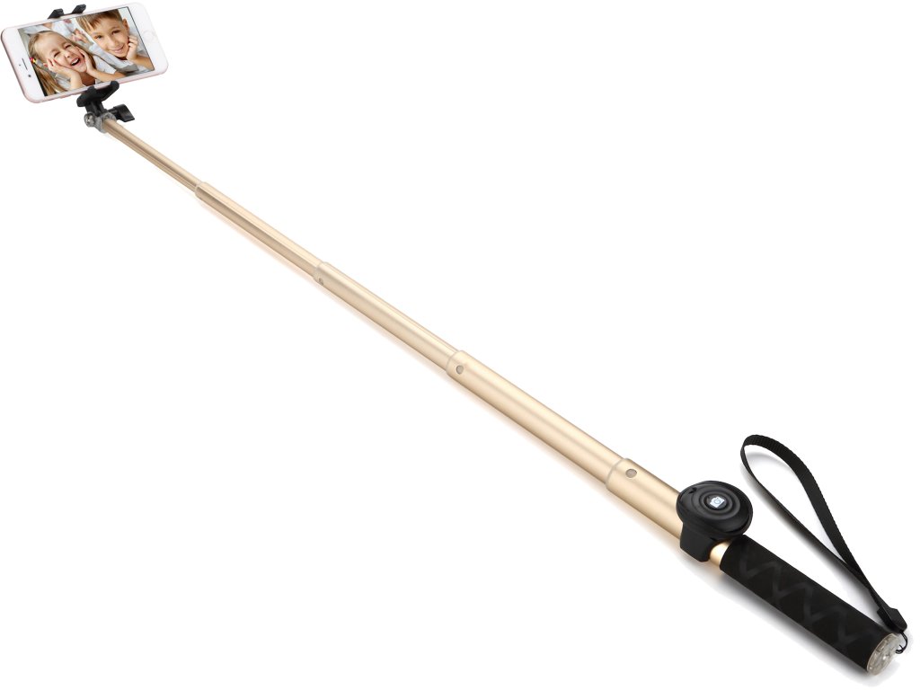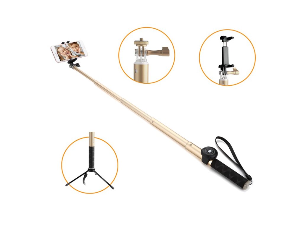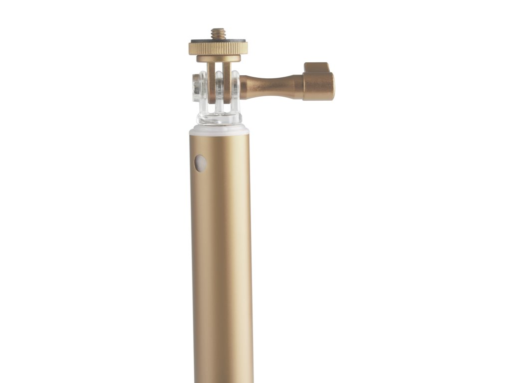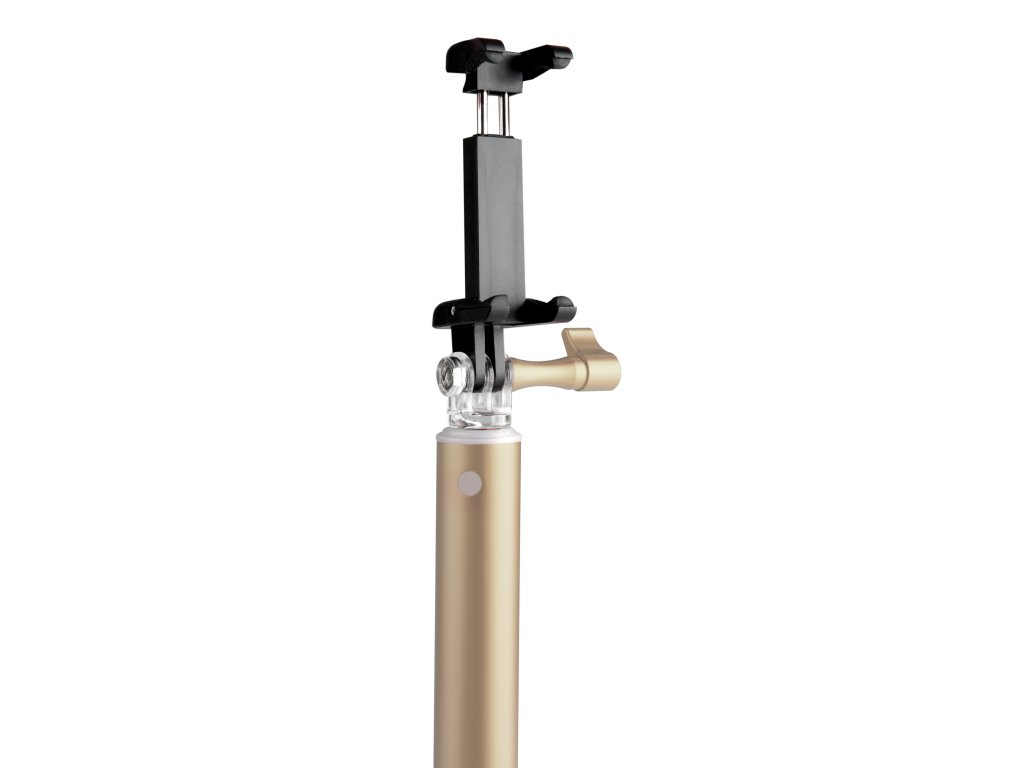 GoGENBTSELFIE4G • Bluetooth selfie tyč, GoGEN BTSELFIE4G, teleskopický monopod • teleskopická - bluetooth , maximálne zaťaženie 1000 g , určená pre: telefóny s Android 3.0 a vyšším (podporujúce Bluetooth V 3.0); iOS 4.0 a vyšším , telefóny o šírke od 55 do 80 mm , fotoaparáty a kamery so statívovým závitom 1/4 " , hliníková teleskopická tyč , protišmyková rukoväť , aretácia , bluetooth spúšť (napájaná batériou CR2032) , dĺžka: 29 - 1170 cm , balenie obsahuje: tyč, pútko na tyč, bluetooth spúšť (vrátane batérie), držiak spúšte na tyč, minikarabina na spúšť, tripod sa statívovým závitom 1/4 ", držiak na telefón, držiak sa statívovým závitom 1/4 " , farba: zlatá