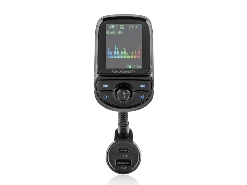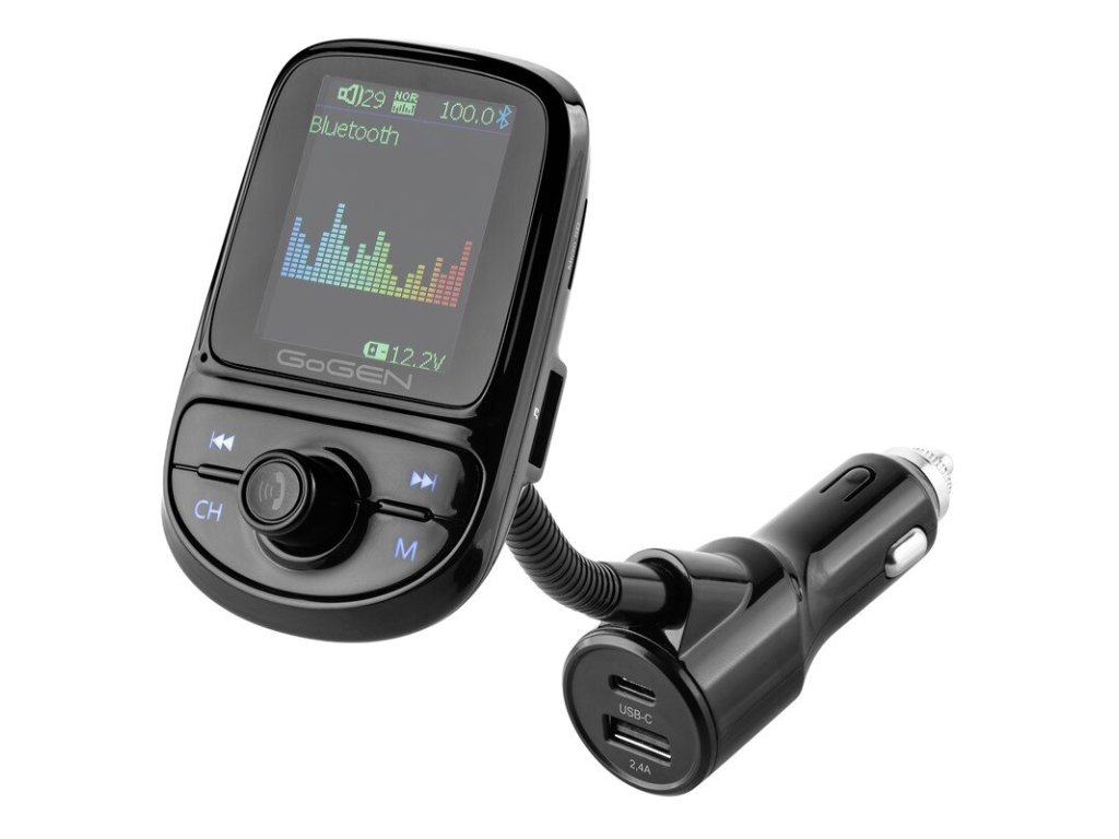 GoGENCTR585BTCN • Bluetooth FM transmitter, GoGEN CTR585BTCN, vstup pre Micro SD karty • LED displej , bluetooth V5.0 , frekvenčný rozsah 87,6 až 107,9 MHz , USB vstup (max. 32 GB) , vstup pre Micro SD karty (max. 32 GB) , podpora formátu MP3, FLAC, WMA, WAV , USB port pre nabíjanie externých zariadení 5 V / max. 2,4 A , USB - C port pre rýchle nabíjanie externých zariadení 5 V / max. 18 W , vstupné napätie 12 - 24 V , farba: čierna