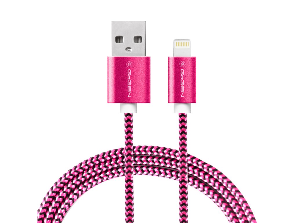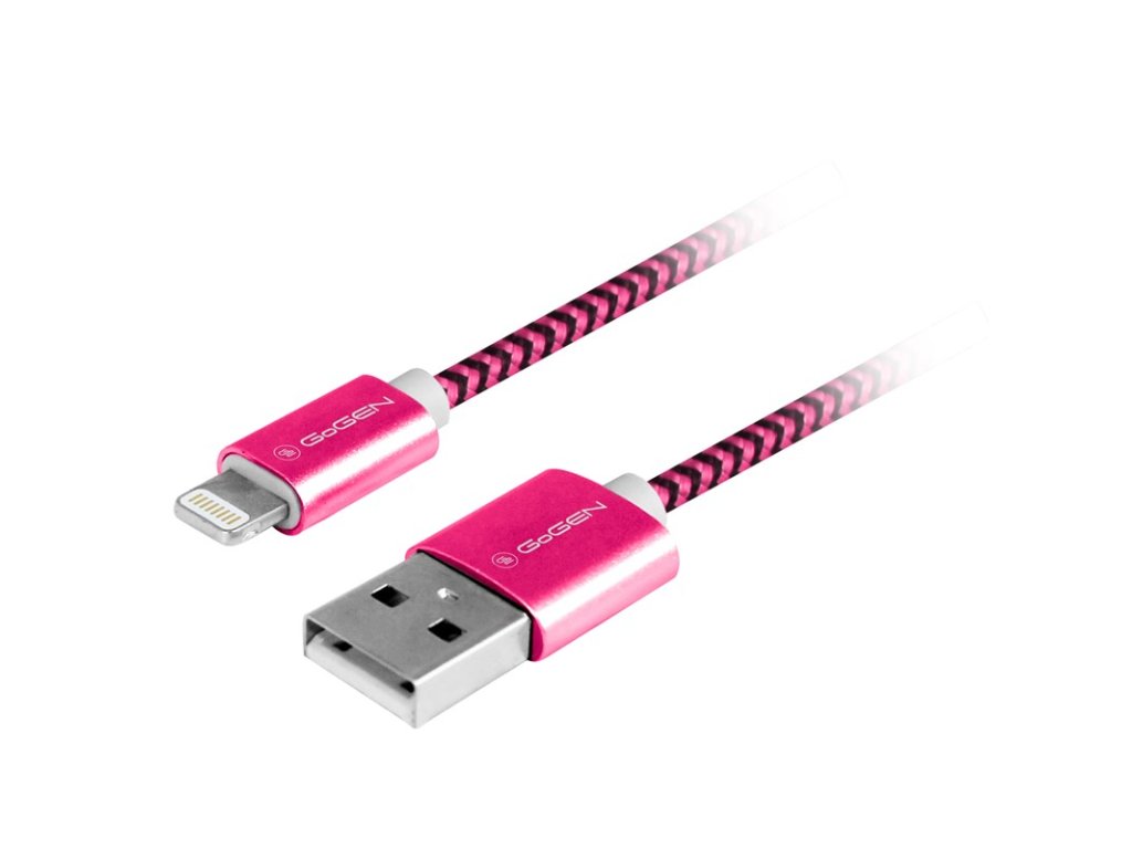 GoGENLIGHTN100MM25 • Kábel lightning pre iPhone, iPad, GoGEN LIGHTN100MM25, dĺžka 1 m • prepojovací Lightning kábel , USB A vidlice (M) - Lightning vidlice (M) , USB 2.0 , dĺžka 1 m , kovové konektory , textilné opletenie , farba: ružová