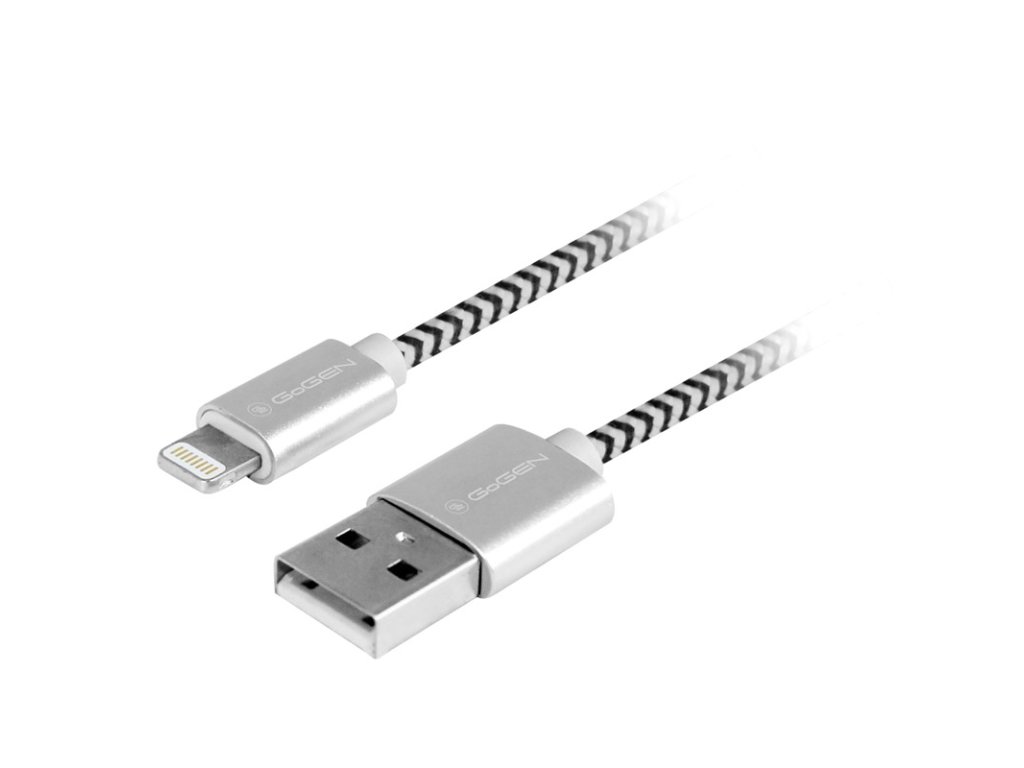 GoGENLIGHTN300MM24 • Kábel lightning pre iPhone, iPad, GoGEN LIGHTN300MM24, dĺžka 3 m • prepojovací Lightning kábel , USB A vidlice (M) - Lightning vidlice (M) , USB 2.0 , dĺžka 3 m , kovové konektory , textilné opletenie , farba: strieborná