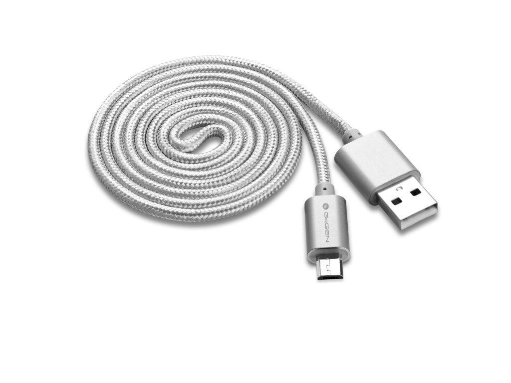 GoGENMICUSB100MM05 • Prepojovací kábel USB micro-B, GoGEN MICUSB100MM05, dĺžka 1 m • prepojovací opletaný metalický kábel , samotný kábel je opatrený vonkajším textilným opletením v striebornej farbe , USB A vidlica (M) - USB micro-B vidlica (M) , USB 2.0 , dĺžka 1 m , kovové konektory , plochý kábel , rada PREMIUM , farba: strieborná