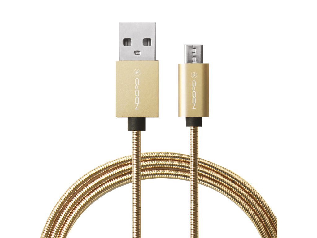 GoGENMICUSB100MM21 • Prepojovací kábel USB micro-B, GoGEN MICUSB100MM21, dĺžka 1 m • prepojovací USB kábel , USB A vidlice (M) - USB micro-B vidlice (M) , USB 2.0 , dĺžka 1 m , kovové konektory , vonkajšie kovové opletenie , farba: zlatá