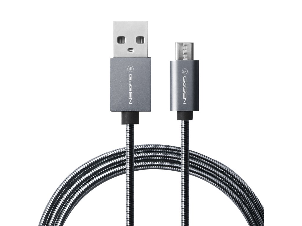GoGENMICUSB100MM22 • Prepojovací kábel USB micro-B, GoGEN MICUSB100MM22, dĺžka 1 m • prepojovací USB kábel , USB A vidlice (M) - USB micro-B vidlice (M) , USB 2.0 , dĺžka 1 m , kovové konektory , vonkajšie kovové opletenie , farba: titánová