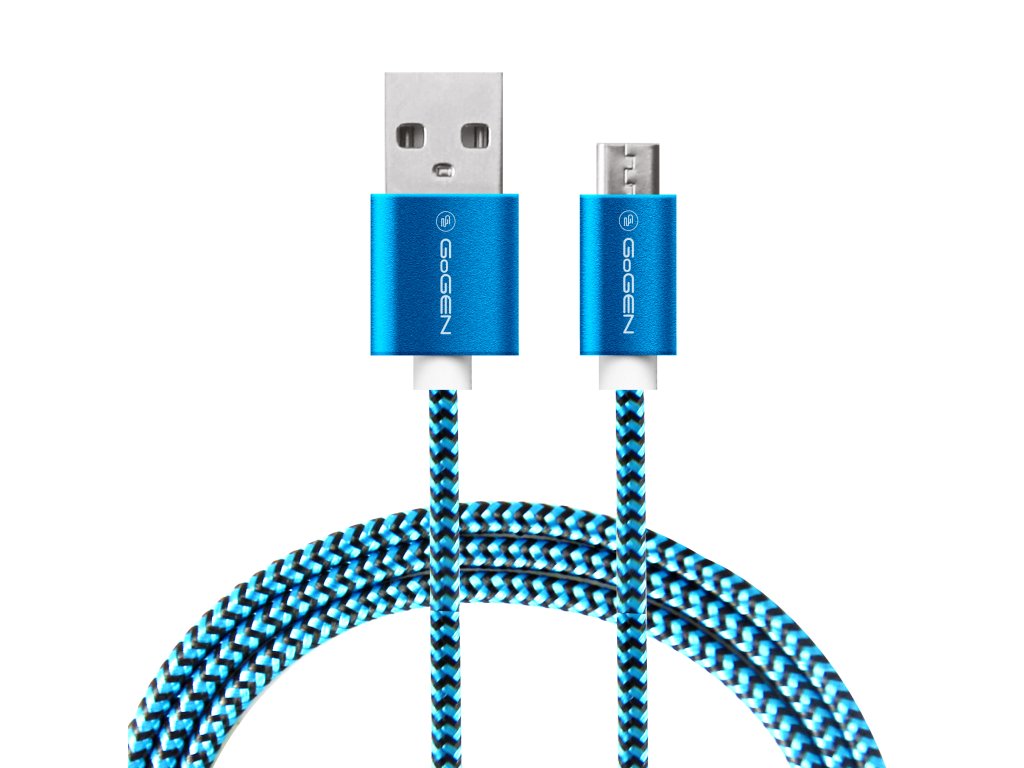 GoGENMICUSB100MM26 • Prepojovací kábel USB micro-B, GoGEN MICUSB100MM26, dĺžka 1 m • prepojovací USB kábel , USB A vidlice (M) - USB micro-B vidlice (M) , USB 2.0 , dĺžka 1 m , kovové konektory , vonkajšie textilné opletenie , farba: modrá