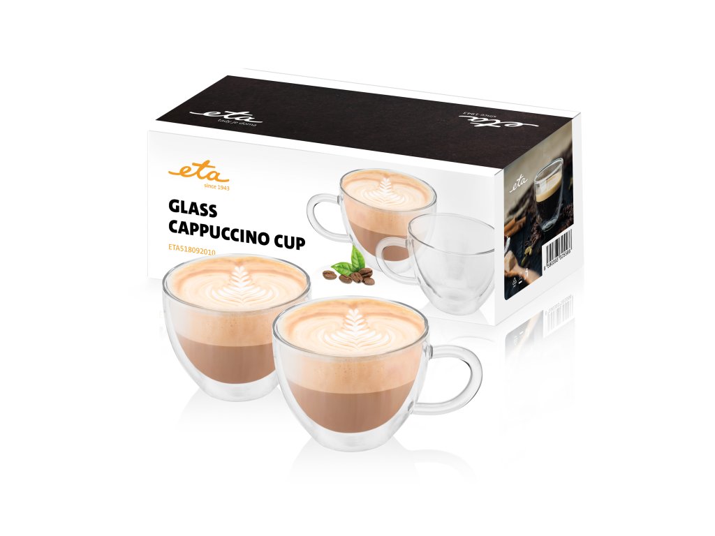 ETA 5180 92010, poháre na cappuccino s uškom, dvojstenné sklo , objem 230 ml