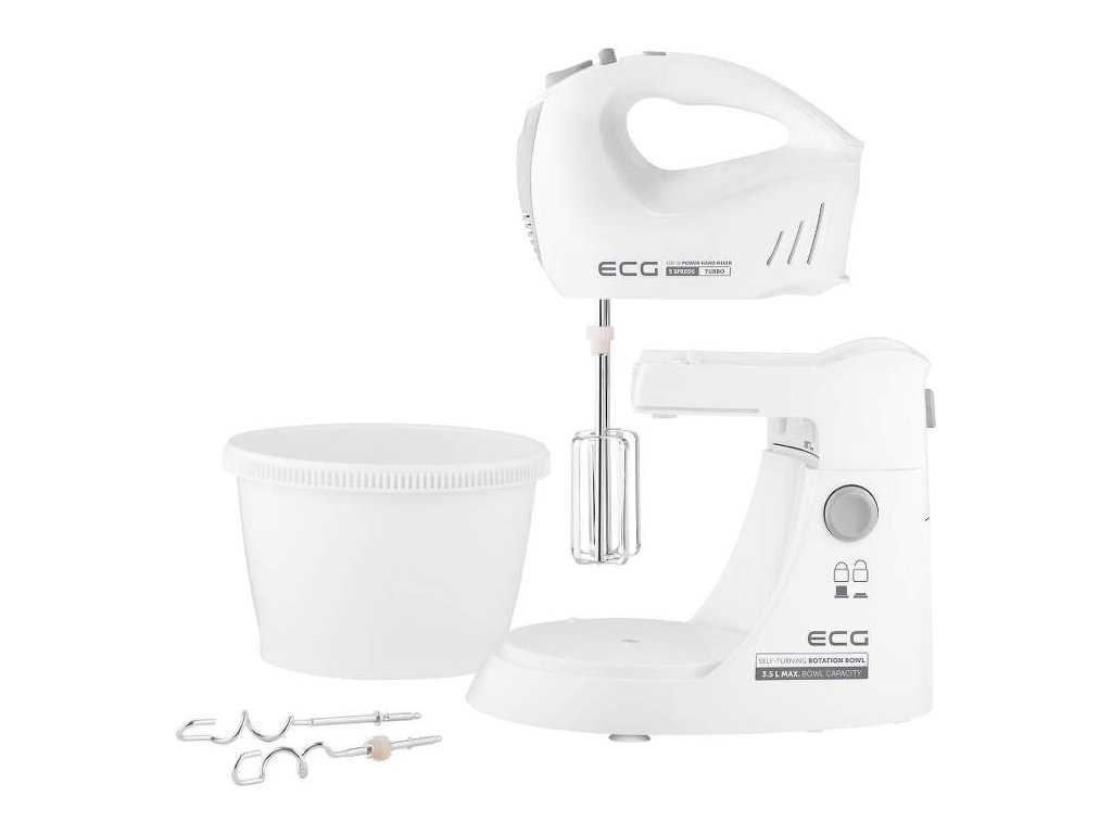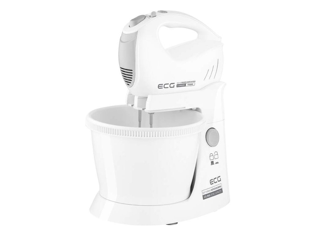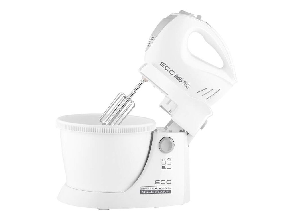 Ručný mixér s otočnou miskou - ECG RSM 4052, príkon 400 W, 5 rýchlostí, objem nádoby 3,5 l, materiál nádoby plast, 1 ot./min, biela a sivá farbaDodatočné parametre
