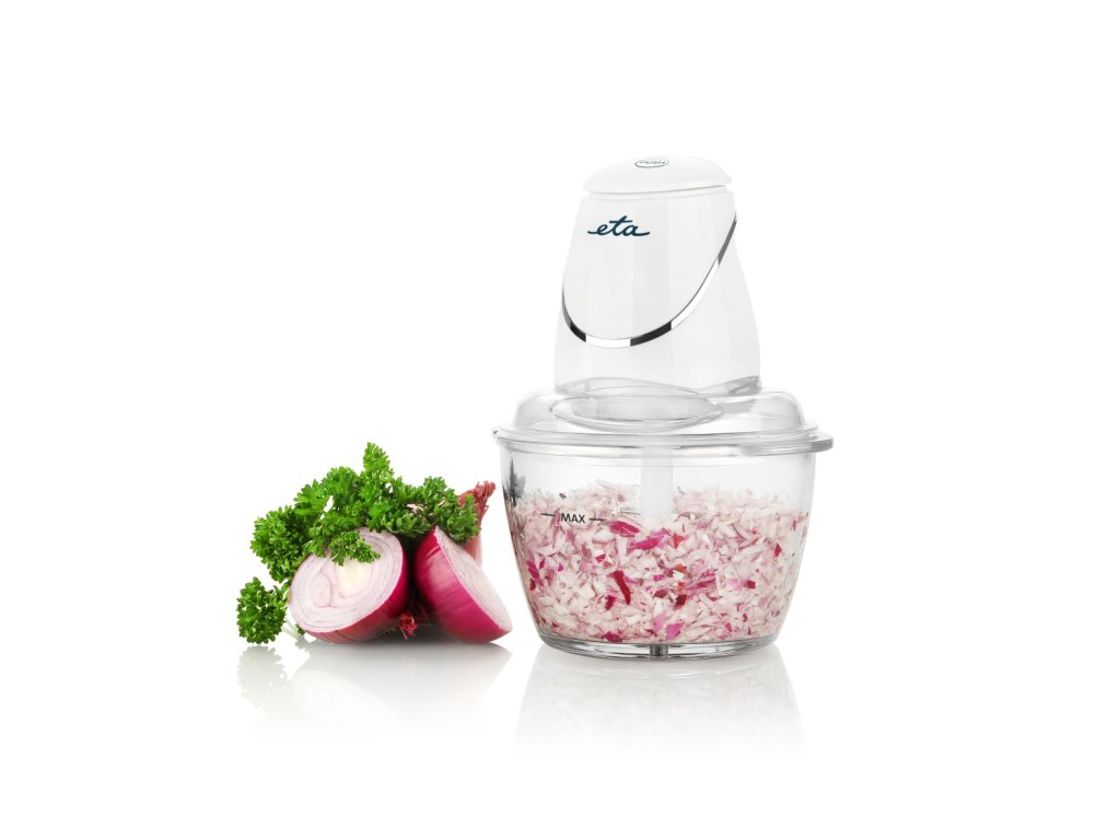 ETA107990000 • sekáčik potravín, ETA 107990000, objem nádoby 1,25 l • príkon 500 W , objem nádoby 1,25 l (úžitkový objem 0,7 l) , 2 rýchlostné stupne , štvorramenný nerezový nôž , veko na zakrytie nádoby pri uskladnení nasekaných surovín , plastová stierka , protišmyková gumová podložka , dĺžka napájacieho kábla 0,9 m , farba: biela