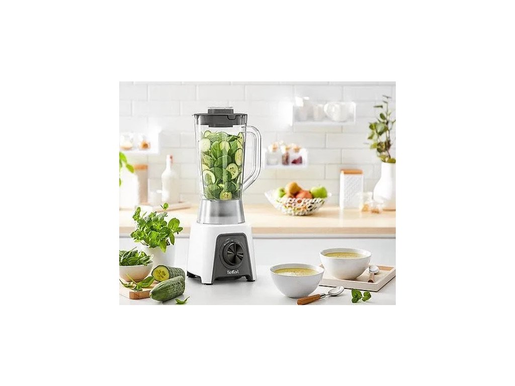 Stolový mixér – Tefal BL2C0130, s príkonom 450 W, počet rýchlostí 2, objem nádoby 1,5 l, materiál nádoby plast, pulzná funkcia, vhodné na drvenie suchých plodov, smoothie a zeleninové pyré, odolné nože na ľahké drvenie ľadu, počet nádob 1 ks, praktická odmerka, 15-ročná záruka opraviteľnostiDodatočné parametre