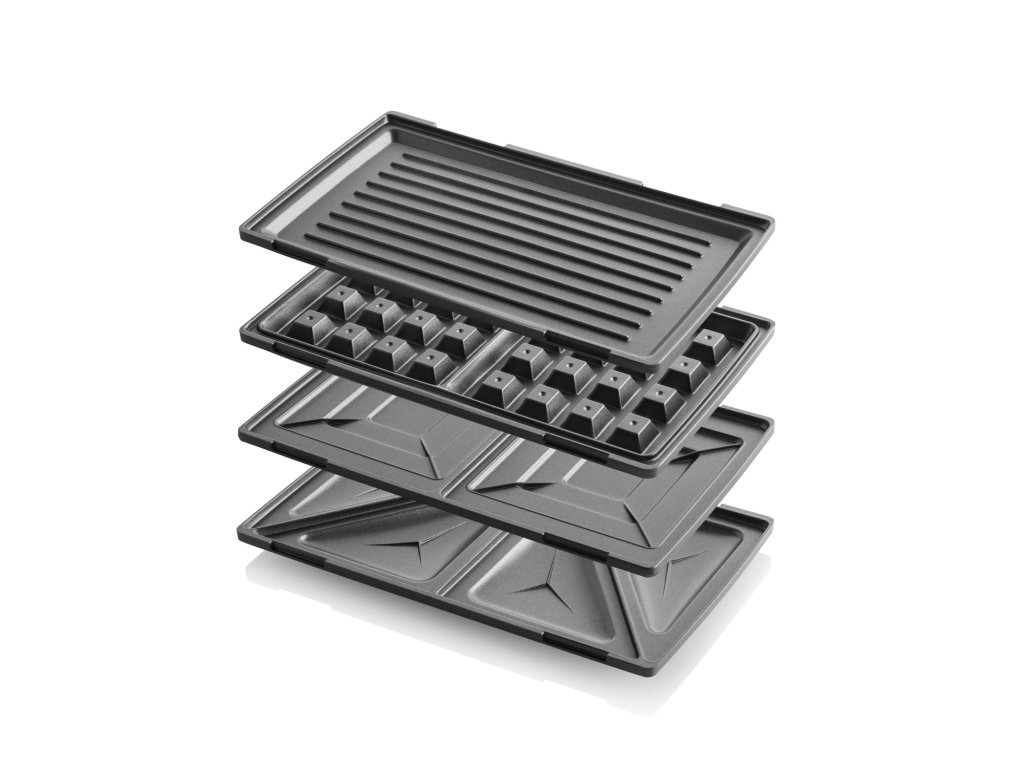 GalletCRO616 • sendvičovač 4 v 1, Gallet CRO616, vaflovač, gril / panini • príkon 700 W , 4 páry výmenných dosiek: sendvičovač (trojuholníky, štvorce), vaflovač, gril / panini , antiadhézna úprava , automatická regulácia teploty , svetelná signalizácia prevádzky a dosiahnutia teploty , možnosť skladovania vo zvislej polohe , protišmykové nožičky , dĺžka napájacieho kábla 0,7 m , farba: nerez/plast