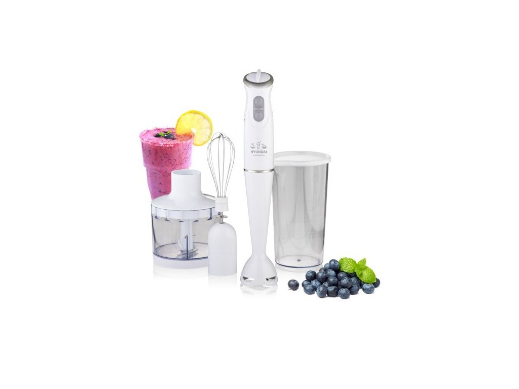 HyundaiHB983 • tyčový mixér 3 v 1, Hyundai HB983, plynulá regulácia otáčok • príkon 380 W , DC motor , plynulá regulácia otáčok , 2 rýchlosti - tlačidlo I (regulovaná), II (vysoká) rýchlosť , PRÍSLUŠENSTVO: plastový tyčový mixér, šľahacia metla, sekáčik 800 ml, pracovná nádoba o objeme 600 ml - veko , dĺžka napájacieho kábla 1,45 m , farba: biela