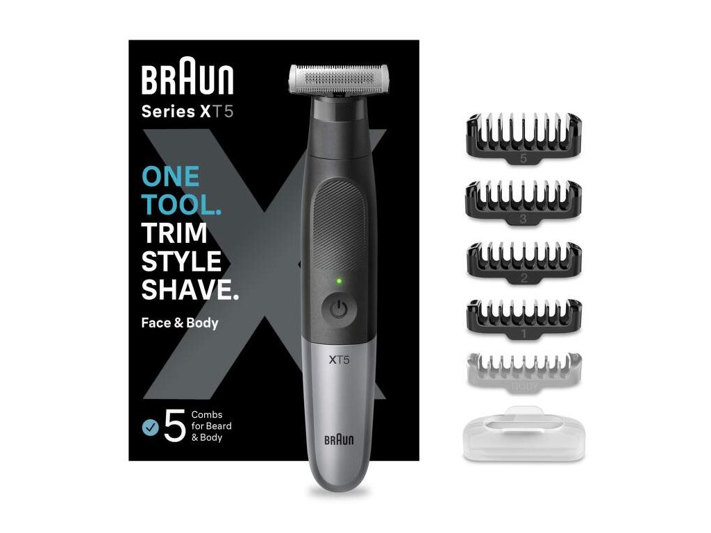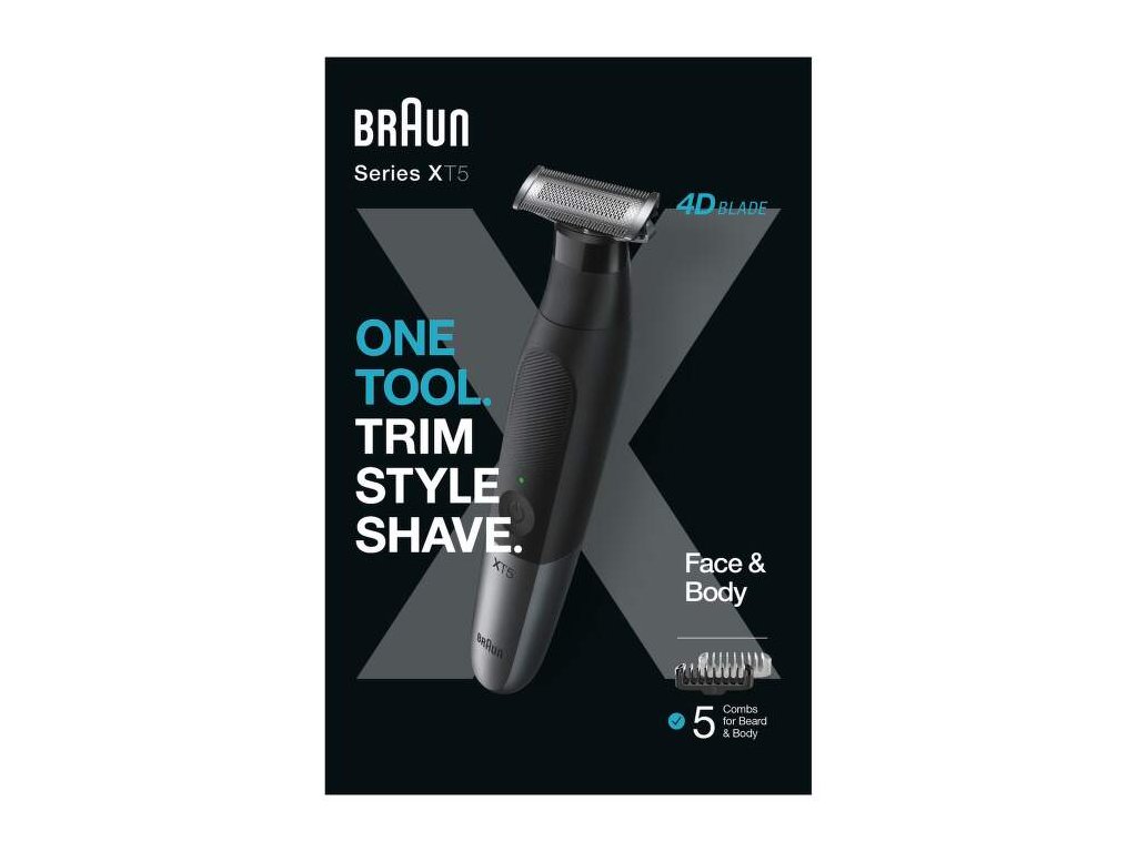 Pánsky zastrihávač Braun XT5100 je elektrický strojček na holenie aj úpravu telesného ochlpenia v jednom, je 100% vodotesný a je možné ho používať nasucho aj na mokro, Vďaka štíhlému designu a protišmykovej rukoväti sa s ním pracuje prekvapivo ľahko. Počet nadstavcov 5 ksDodatočné parametre