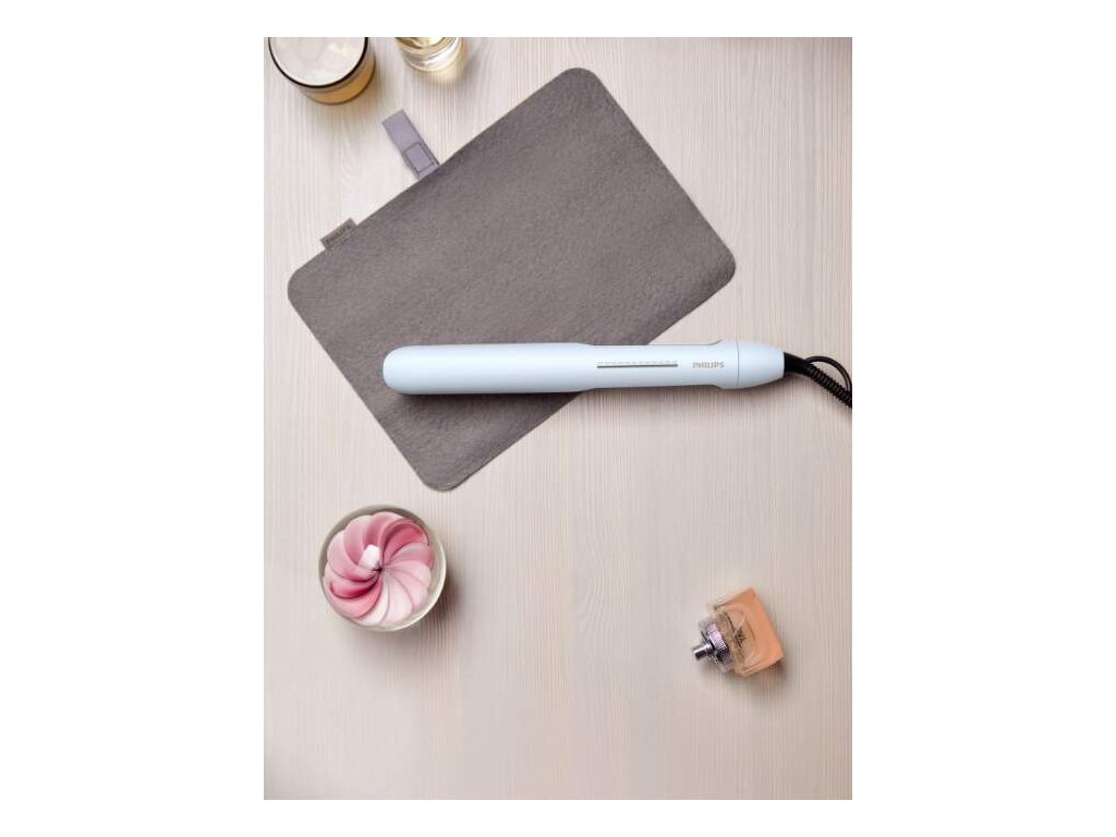 Žehličky na vlasy - Philips BHS520/00, eramický povrch doštičiek s arganovým olejom, 12 teplotných stupňov, rozsah teploty od 120 do 230 °C, doba nahriatia 30 s, analógová regulácia teploty, rýchle nahrievanie, ionizácia, plávajúce žehliace dosky, regulácia teploty, LED displej, dĺžka prívodného kábla 1,8 m, modrá farba, bezpečnostný zámok, pútko na zavesenie a plávajúce žehliace dosky, sieťové napájanie, teplovzdorná podložka súčasťou baleniaDodatočné parametre