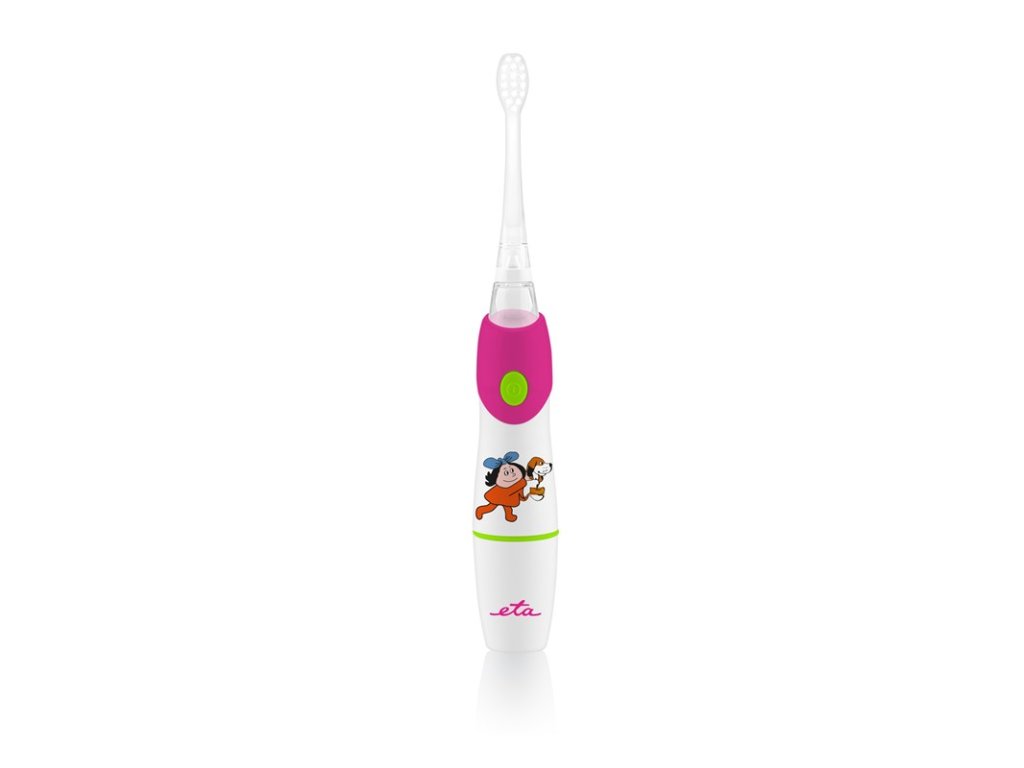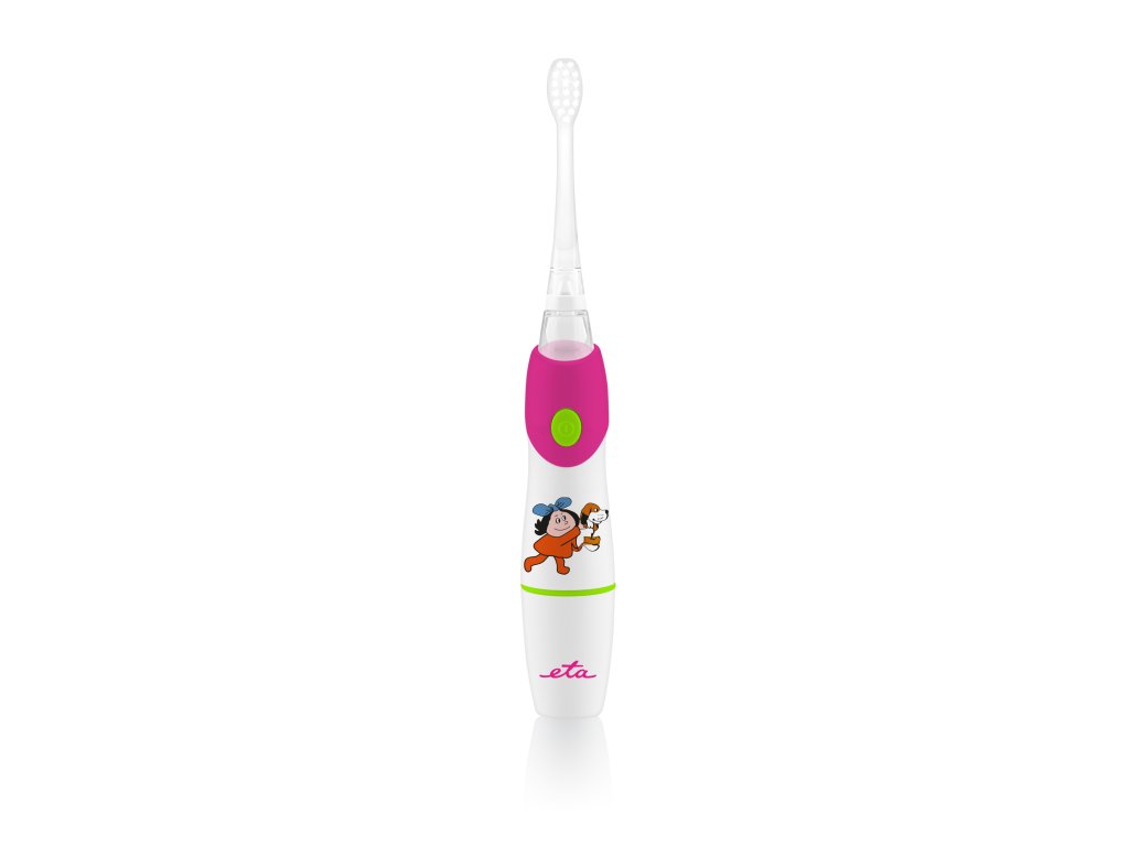 ETA071090010 • detská sonická, batériová zubná kefka, ETA 071090010, technológia microBUBBLES • sonická technológia MOVE+ , technológia microBUBBLES (účinne čistí aj medzizubné priestory) , 2 minútový časovač s 30 sek. intervalmi , farebné svetlo , kefky sú opatrené kvalitnými jemnými DuPont štetinami , protišmykové a vodeodolné prevedenie , PRÍSLUŠENSTVO: 2 kefky (3-6 rokov, 7-10 rokov) , prevádzka na 1ks batérie AAA (súčasťou balenia) , farba: ružová