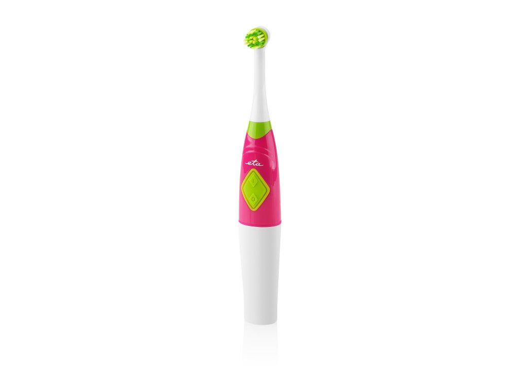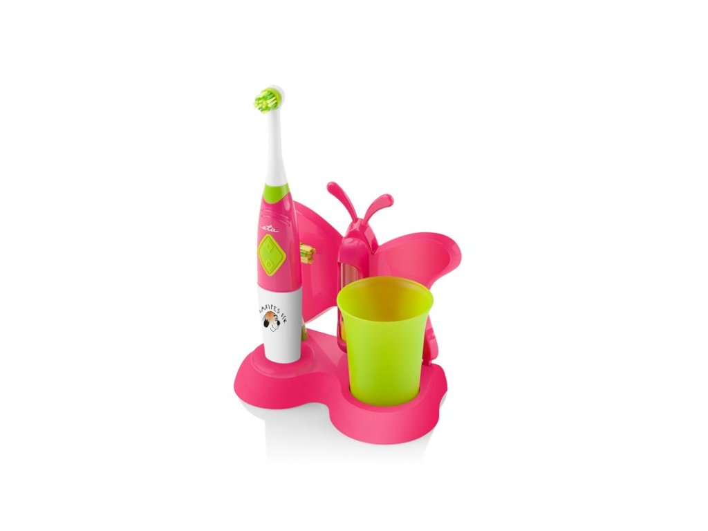 ETA129490070 • elektrická batériová detská zubná kefka , ETA 129490070, vodeodolné prevedenie kefky • batérie: 2x AAA , oscilačný pohyb (4500 kmitov za minútu) , vodeodolné prevedenie kefky , PRÍSLUŠENSTVO: odkladací stojan s dekoráciou, presýpacie hodiny (cca 2 minúty), pohárik na vodu , farba: ružová